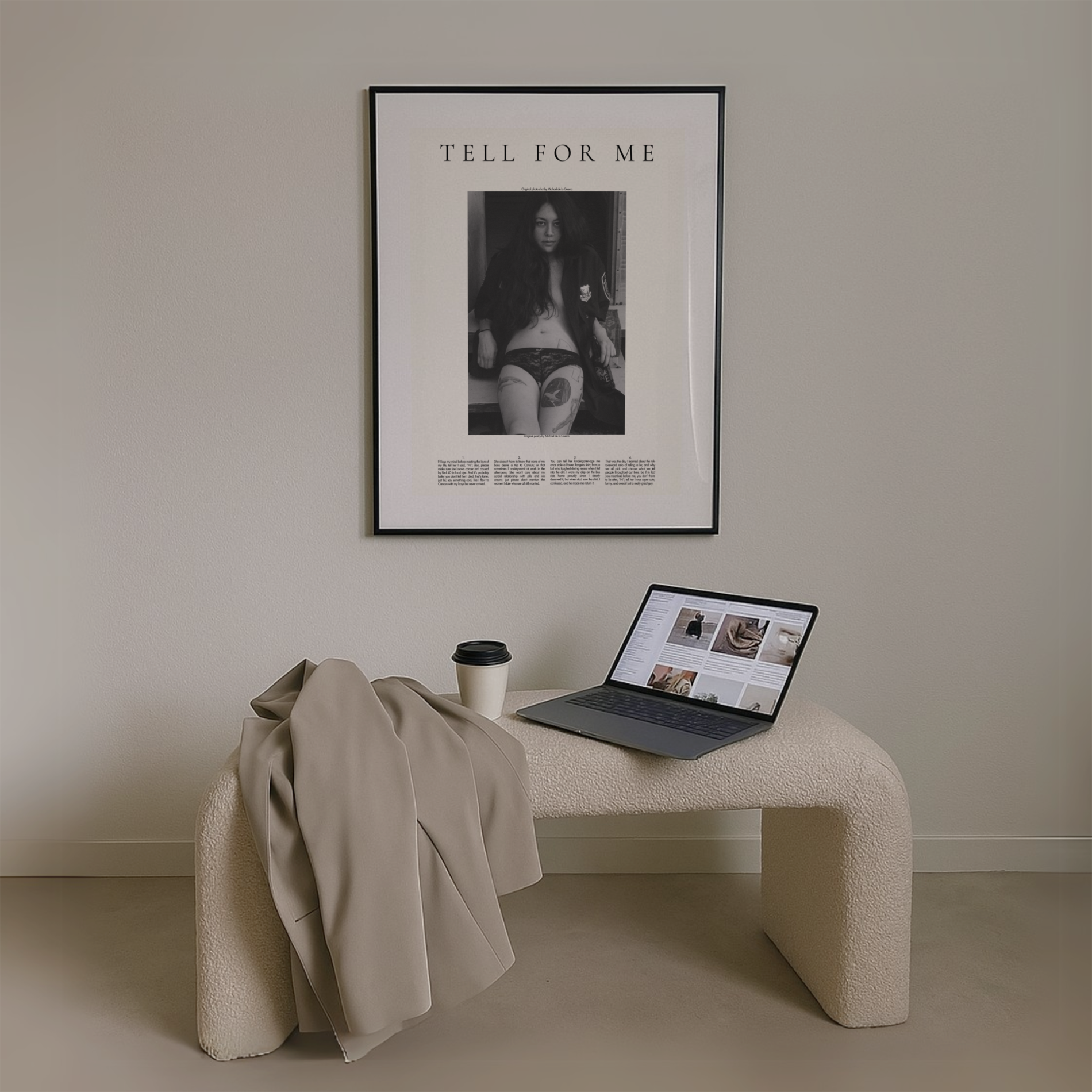 A playful, vulnerable poetic list about what to tell a future love — printed as narrative poster art.